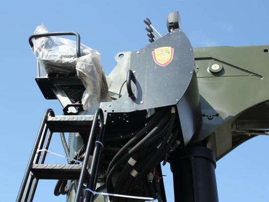 تم تجهيز المركبة برافعة تلسكوبية من طراز Palfinger SPS40000 ذات خمسة أقسام، توفر قدرة رفع قصوى تبلغ 16000 كجم، وارتفاع رفع أقصى يبلغ 21.5 مترًا، ونطاق دوران كامل بزاوية 360 درجة. تتميز بتصميم خفيف الوزن، مناسب لجميع الظروف، ومتساوٍ في القوة، بالإضافة إلى أذرع تعمل بأسطوانات هيدروليكية ثنائية المرحلة ودعامات خارجية واسعة المدى، مما يحقق توازنًا بين نطاق تشغيل أوسع وثبات رفع معزز.