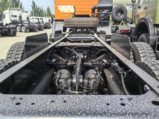 شاسيه BeiBen ذو المحور المزدوج هو شاسيه 6×4 مصمم خصيصًا لتعديل شاحنات التفريغ الإنشائية الثقيلة. يتميز بموثوقيته وقدرته على تحمل الأحمال. يعمل بمحرك WD615.50 Euro II (290 حصان)، مقترنًا بناقل حركة متزامن 9JS150A ومحور تخفيض ثنائي المراحل بنسبة 5.263. يتميز بقاعدة عجلات طويلة (3800 + 1450 مم) ونظام تعليق زنبركي مكافئ من 13 ورقة، مما يضمن ثباتًا ممتازًا في تحمل الأحمال. هذا الشاسيه مناسب لتركيب صندوق شحن بأبعاد 5600 × 2300 × 1500 مم، مما يجعله مثاليًا لنقل المعادن ومشاريع البناء.