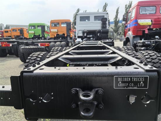 تستخدم شاحنة Beiben إطارًا من نوع بطن السمكة من مرسيدس بنز بمقطع عرضي متغير وعارضة مقواة بثلاث طبقات، مما يعزز بشكل كبير قدرة المركبة على تحمل الحمولة.